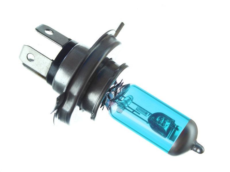 A halogen bulb with H4 base that gives you a nice blue light, with a 6000K color-temperature.