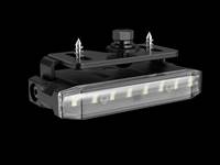 Flat lamp with "invisible" white powerful LEDs and bult-in R65-approved strobe-light. Can be used, for example as a work lamp or as an extra backlight.