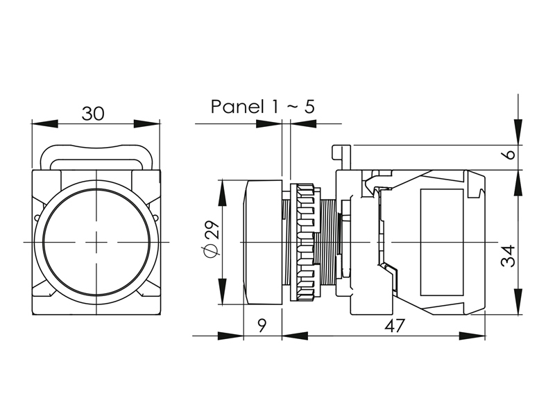 Panel switch for mounting in 22mm holes. Available as On/Off and Push-On. Easy to mount with NO or NC terminals.