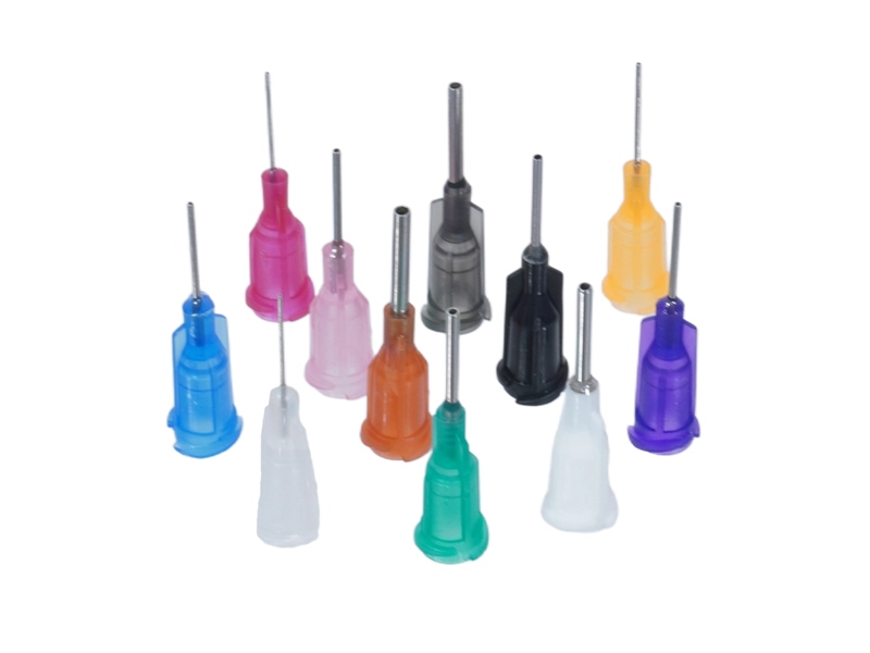 Needle tips in various sizes, with blunt ends, designed for dispensing liquids such as glue, alcohol, flux, etc.