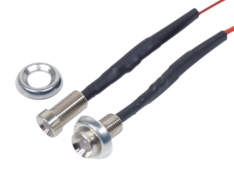 Small powerful 24V RGB LEDs, mounted with chrome or black metal frame with long thread. Used for interior decoration, plushing etc. in trucks.