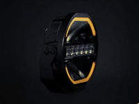 Stylish and contemporary E-approved high-beam with a powerful light, that has a unique look with its 3-part dual color position-light. Available with 7" or 9".