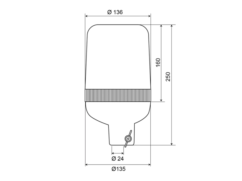 The rotating beacon comes equipped with a factory-installed H1 bulb rated at 70W / 24V, providing a powerful and highly visible warning light. If you wish to upgrade, the lens can easily be unscrewed, allowing you to replace the bulb or install one of our LED dual color light sources.