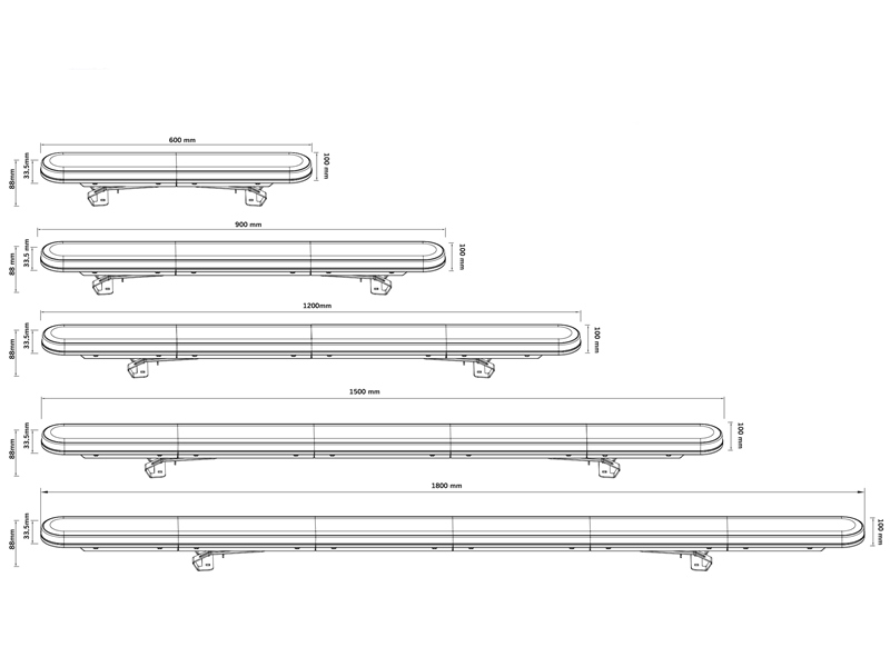 The strobe light bar is available in five lengths (600–1800 mm) and comes with adjustable mounting feet, making it easy to install on trucks, vans, tractors, and special vehicles.