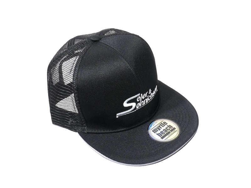 Trucker cap with Sejer & Sønnichsen logo. Comfortable, breathable, sun-protective with adjustable fit. Choose between curved or flat models
