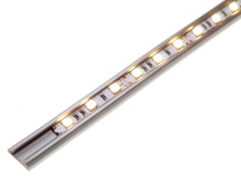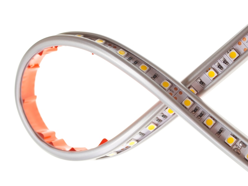 A nice profile for LED stripes, made of a flexible plastic with a metalic-gray surface. A nice and economical way of mounting the LED stripes.